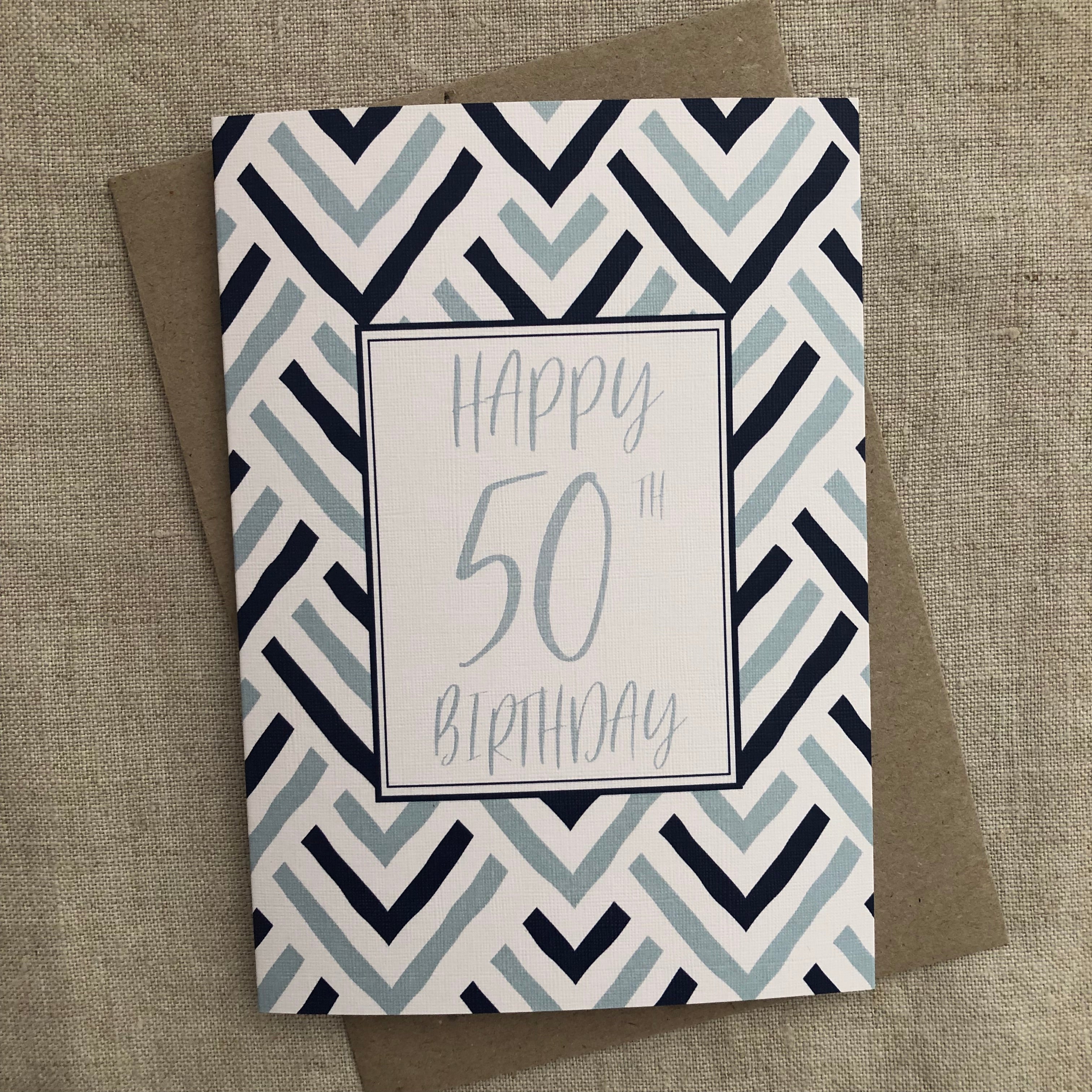 Blue 50th Birthday Card
