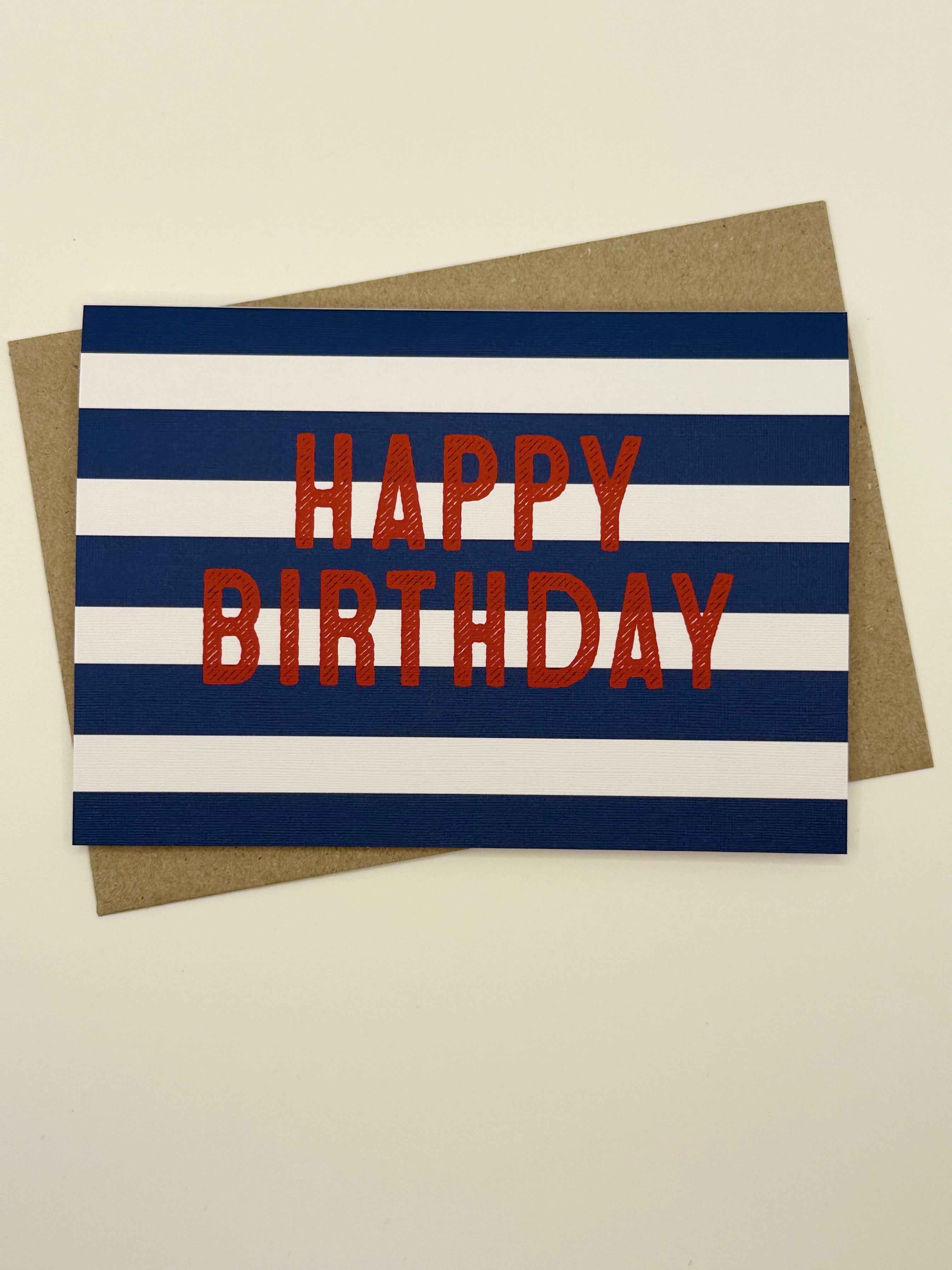 Blue Stripe Birthday Card