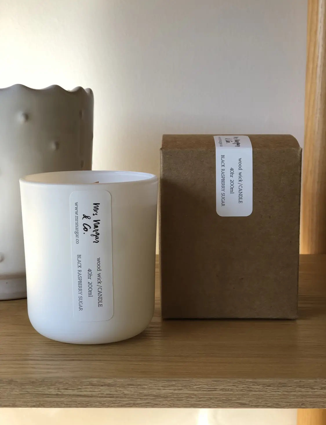With a truley devine selection of Mrs Nargar fragrances to choose from, this Classic medium matt white jar candle is perfect for any room of your home. With a 40 hour burn time, it is 100% soy wax and has a wood wick that crackles like a camp fire.