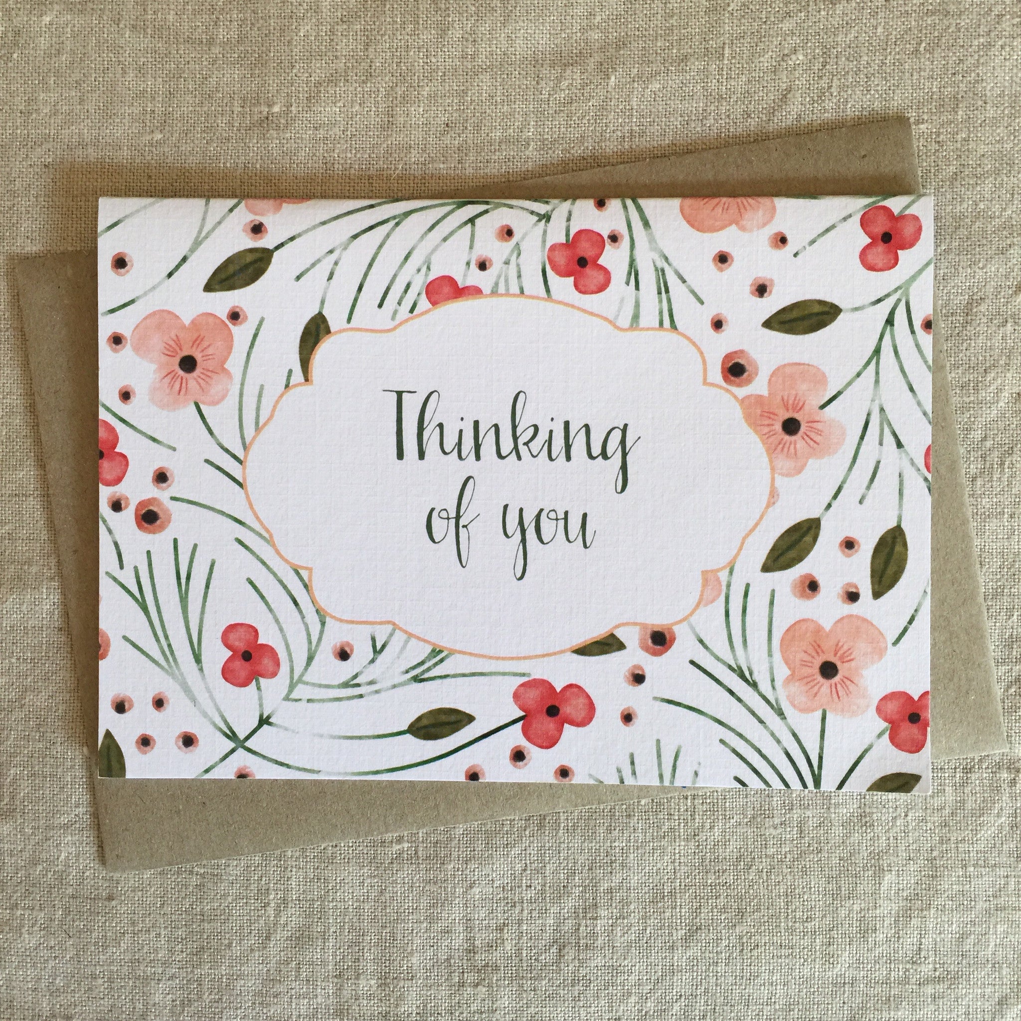 How better to let someone know you are thinking of them then with this gorgeous floral illustrated card.