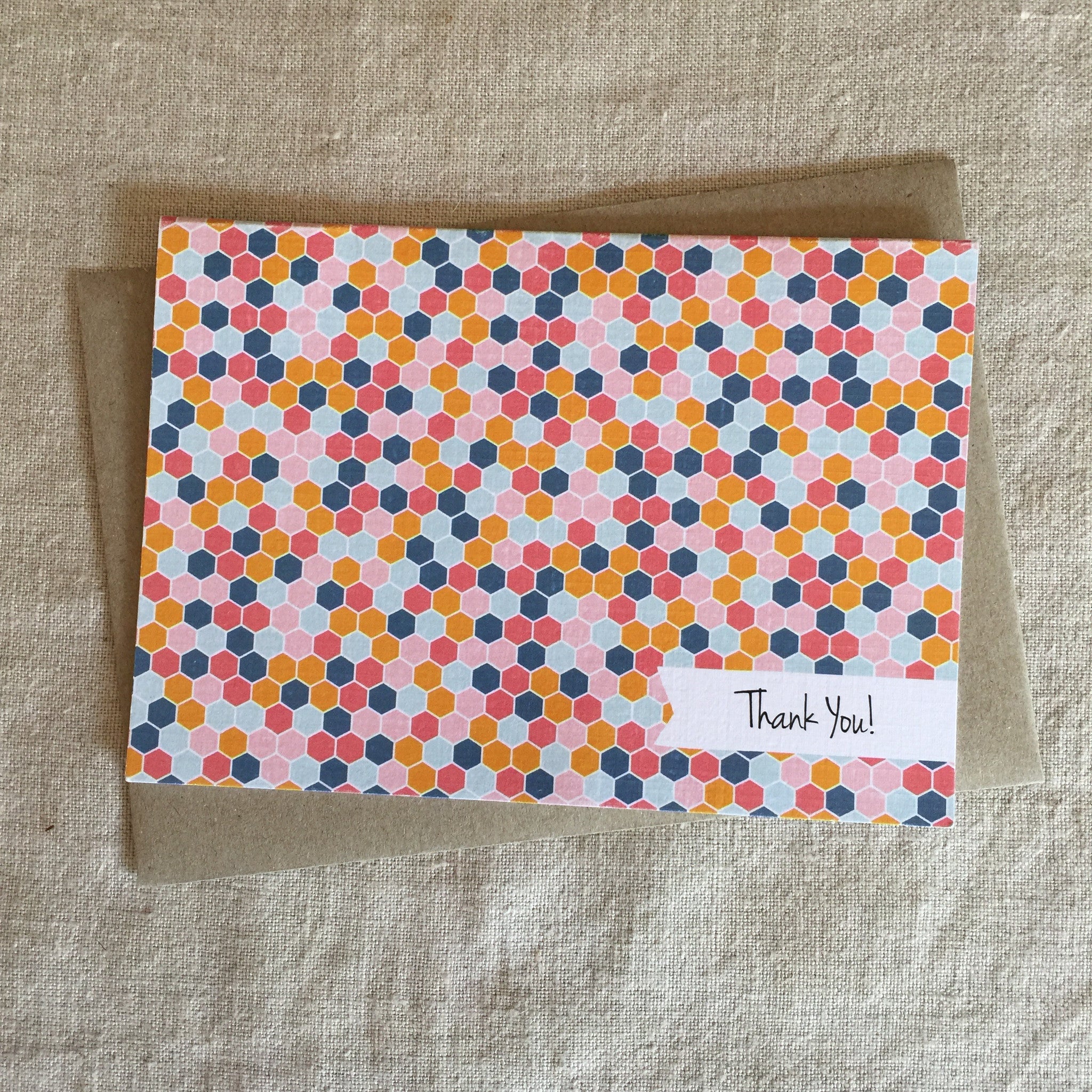 A lovely and fun Thank you card in a Geo Honeycomb print.