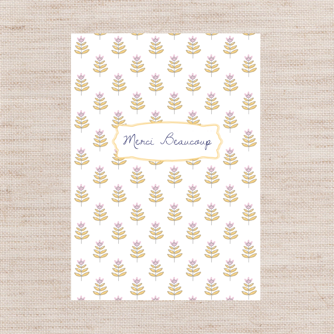 Printed on a white textured linen card (330gsm) and comes with brown kraft envelope.